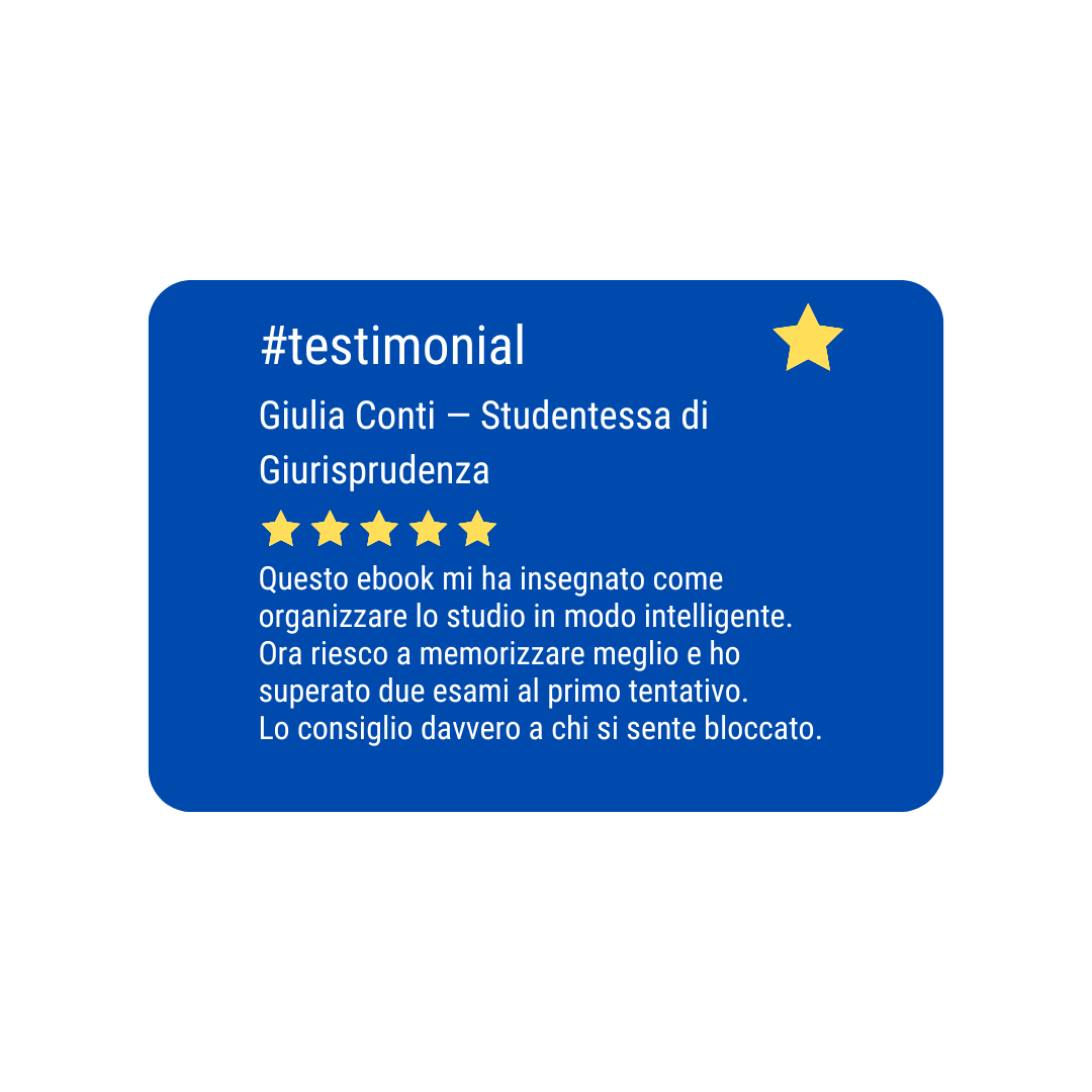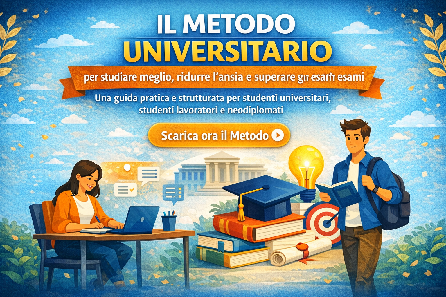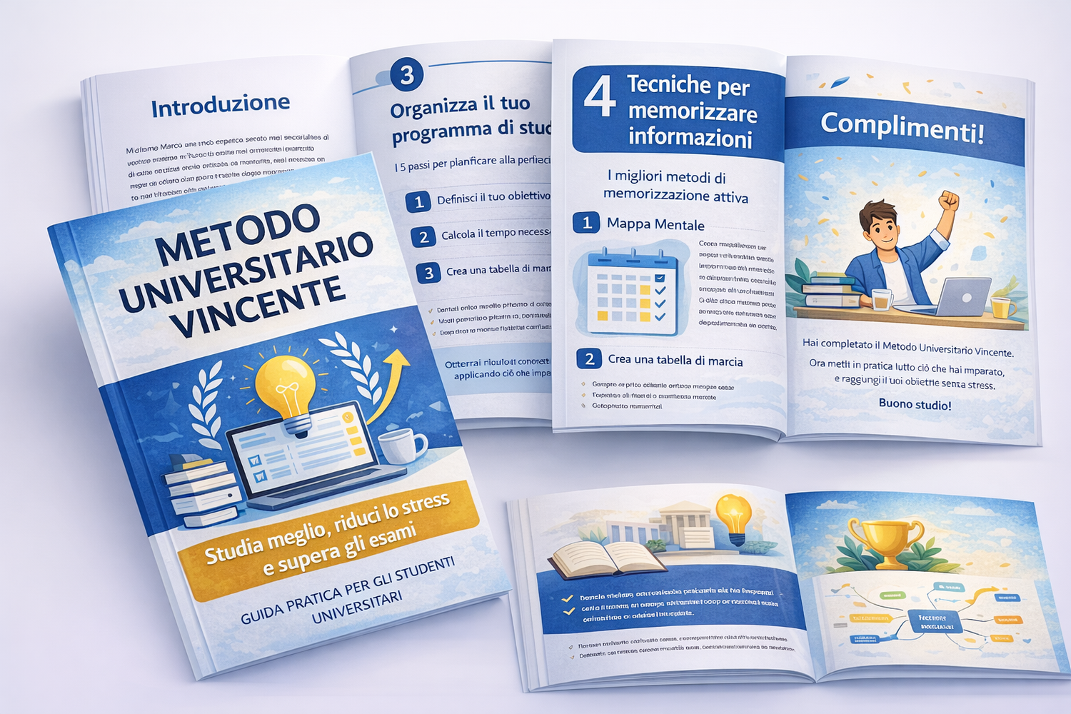 Scarica subito Metodo Universitario e applica un sistema chiaro e replicabile per organizzare lo studio, ridurre l’ansia e affrontare gli esami con maggiore sicurezza.