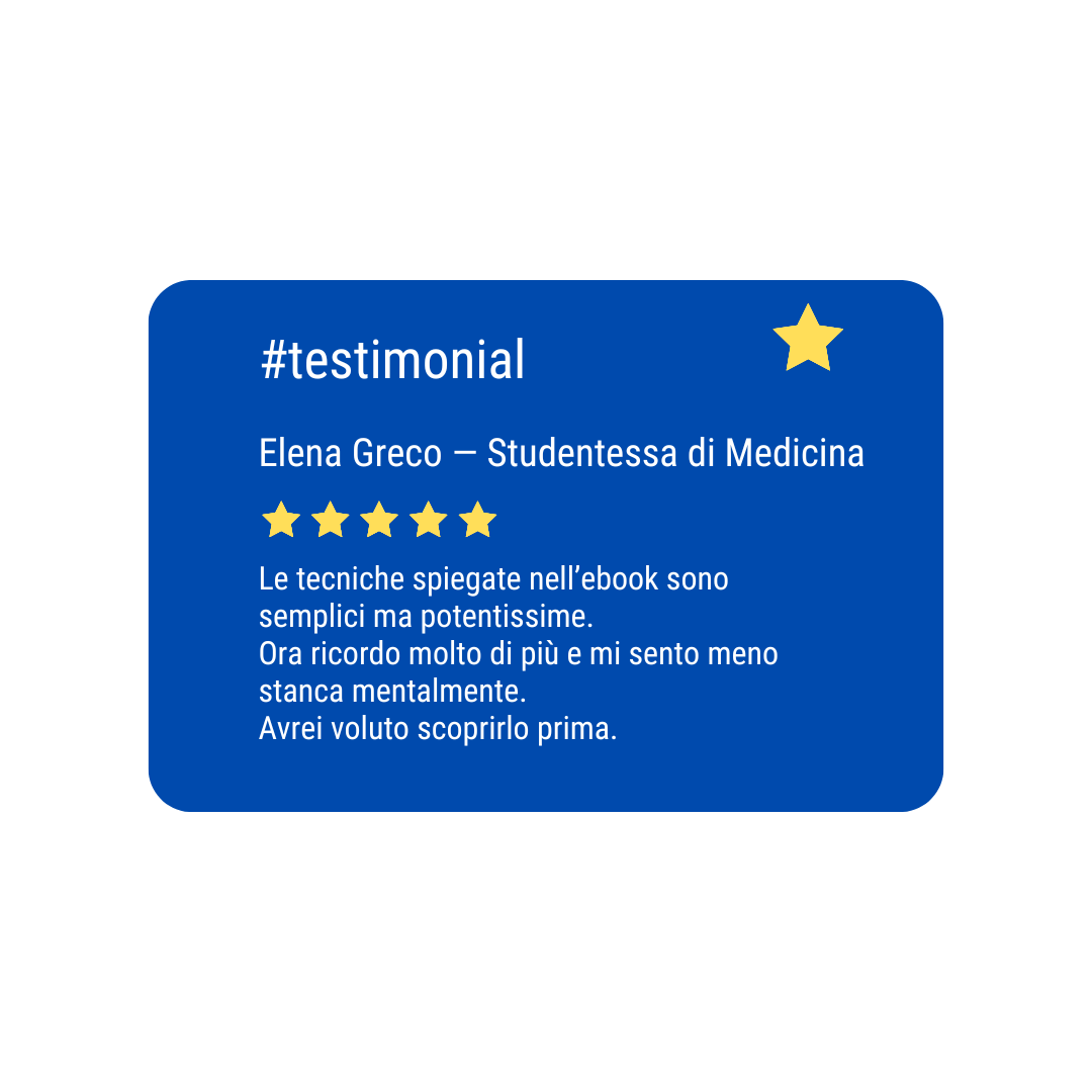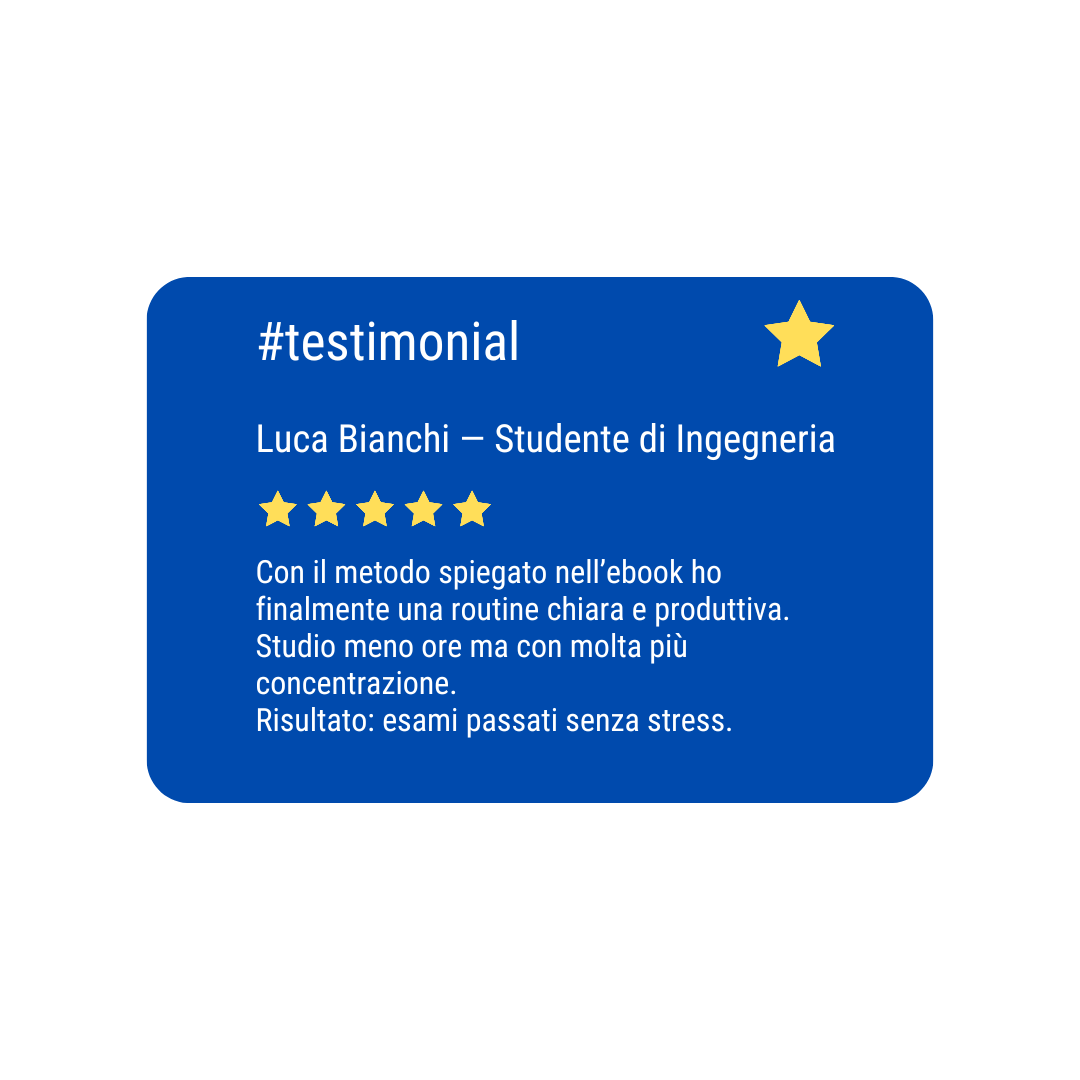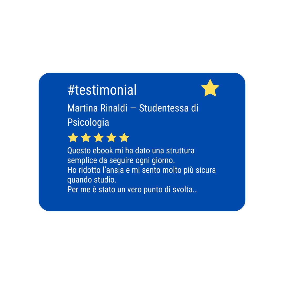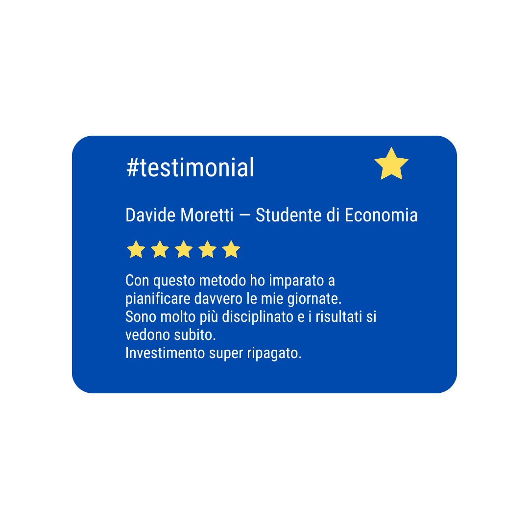 Scarica subito Metodo Universitario e applica un sistema chiaro e replicabile per organizzare lo studio, ridurre l’ansia e affrontare gli esami con maggiore sicurezza.